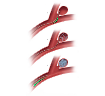 2. Promotes clotting inside the aneurysm and prevents rupture.